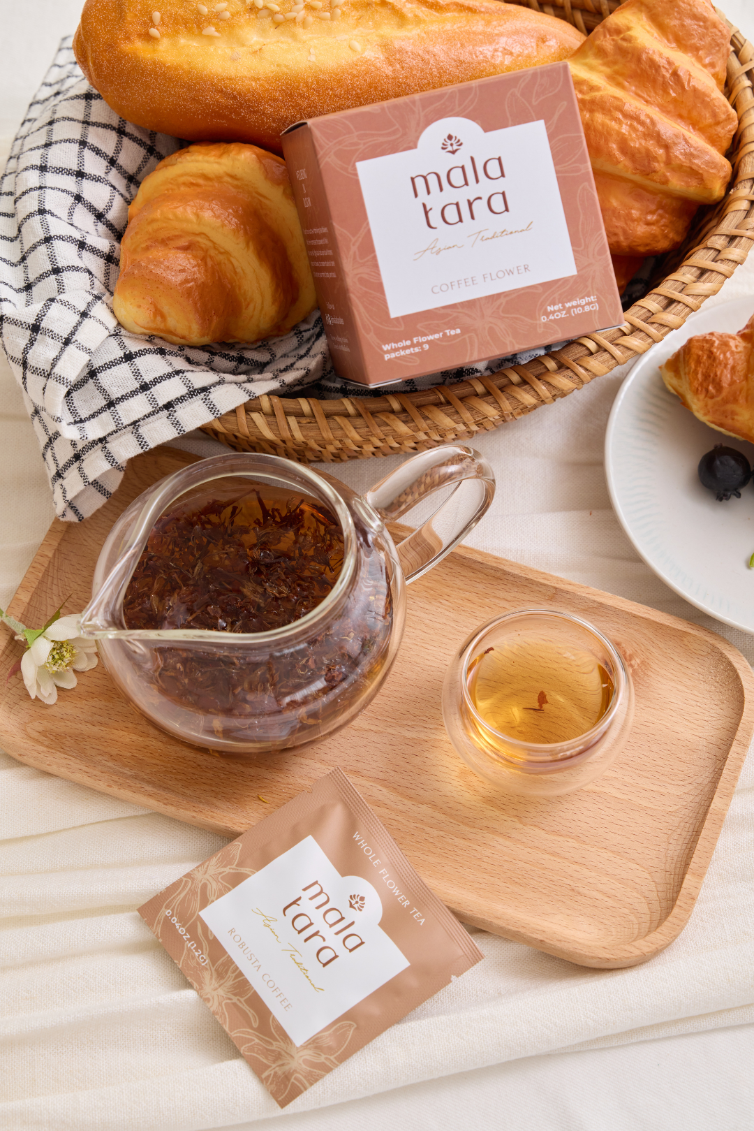 Discover the transformative power of nature with Mala Tara's curated Flower Tea Gift Set. (Signature Whole Flower Tea Box Set) A selection of four premium organic whole flower teas, each encapsulating unique health benefits, flavor profiles, and tales of nature's beauty. Paired with a hand-woven bamboo tea strainer (tea set with tea), this collection is an invitation to elevate your daily tea for relaxation ritual and embark on a sensory journey that touches the soul. This is the premium wellness gift and holiday tea gift set for the season.